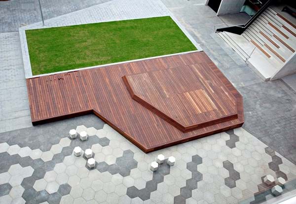 commenced construction in October 2014, the project included multiple feature lawn areas, over 7000 square metres of paving, decking, and over 5,500 square metres of soft landscaping across the vicinity.