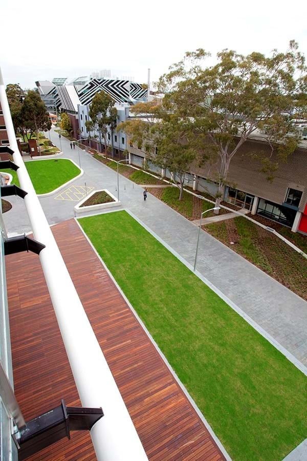 Working closely with builder Lend Lease, Australian Native Landscape Construction (ANLC) was sub-contracted for the landscape construction element of the project which included the installation over 1100m2 of Eureka Kikuyu Lawn.